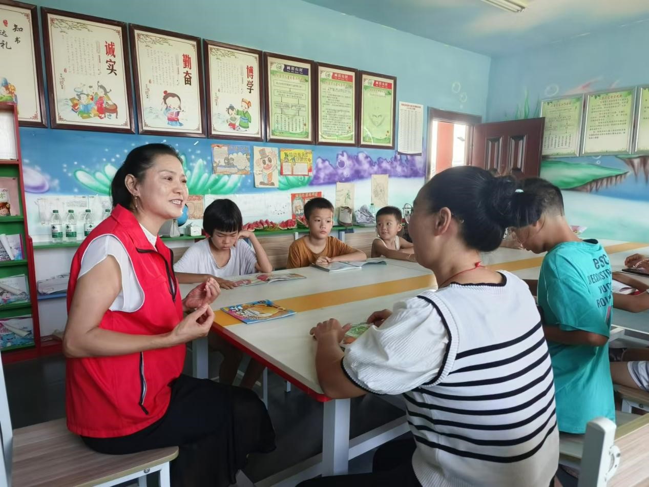 在画眉山村,姜化林和郑芳梅引导小朋友们阅读《三国演义》绘本,生动地讲述了“桃园英雄三结义”等精彩章节。