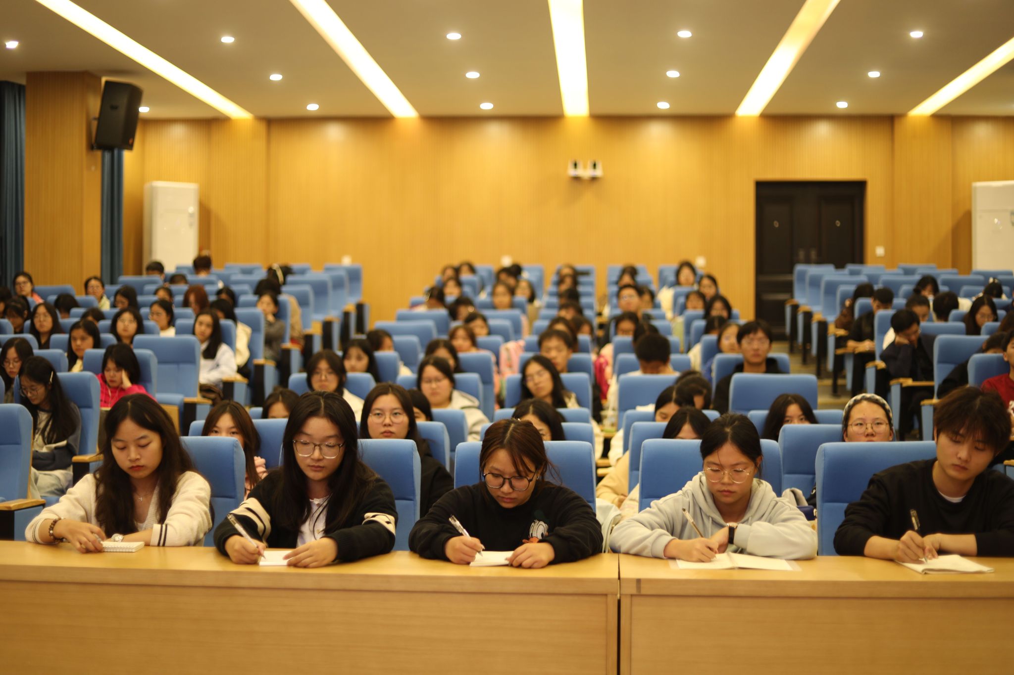 本网讯(通讯员 吴美林 易淑妍)10月26日,马克思主义学院于博雅楼东三报告厅成功举行了以“知不足而奋进,望远山而前行”为主题的讲座。此次讲座特邀马院2020届优秀校友、湘潭大学马克思主义学院博士研究生徐心茹担任主讲人,22级、23级、24级全体学生参加,讲座由辅导员曹惠如主持。