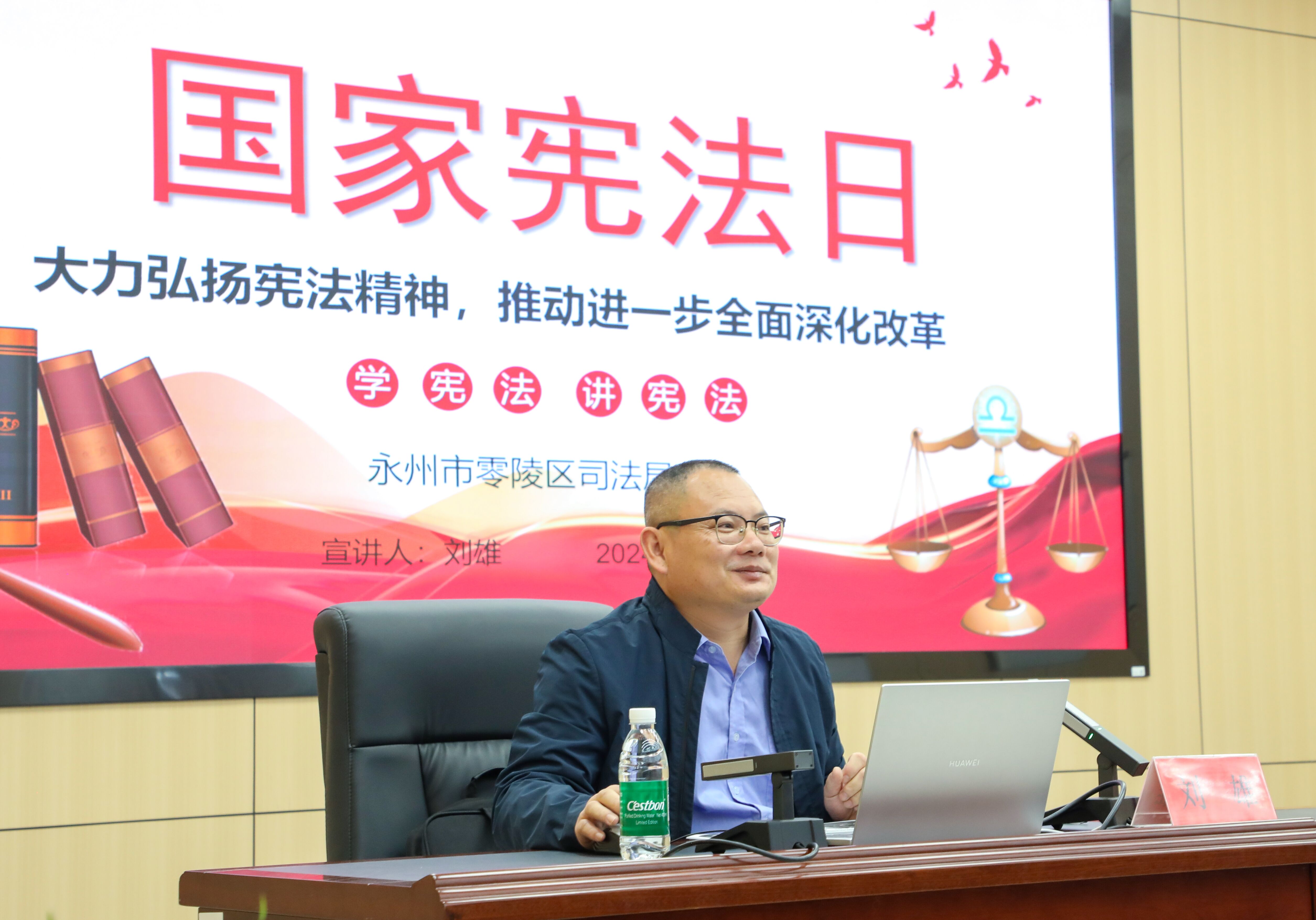 零陵区司法局副局长刘雄向大学生们作“大力弘扬宪法精神,推动进一步全面深化改革”专题讲座。