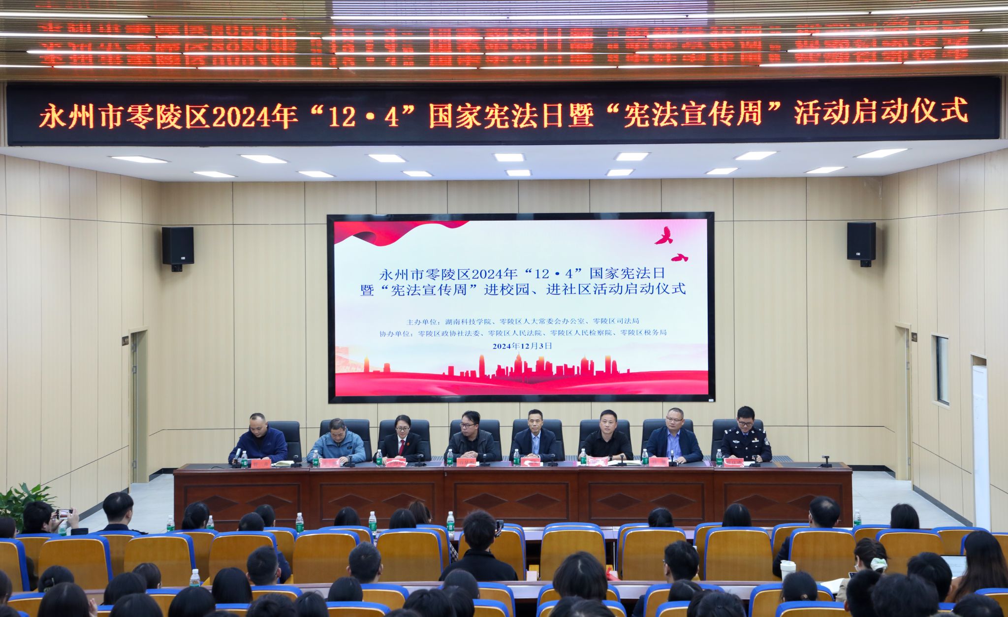 本网讯(通讯员 张健 摄影:朱浩然 杨芊澍 )为开展好第十一个国家宪法日和“宪法宣传周”活动,12月4日,由文法学院、零陵区人大常委会办公室、区司法局主办,零陵区政协社法委、区人民法院、区人民检察院、区税务局协办的“12·4”国家宪法日暨“宪法宣传周”进校园、进社区系列活动启动仪式隆重举行。