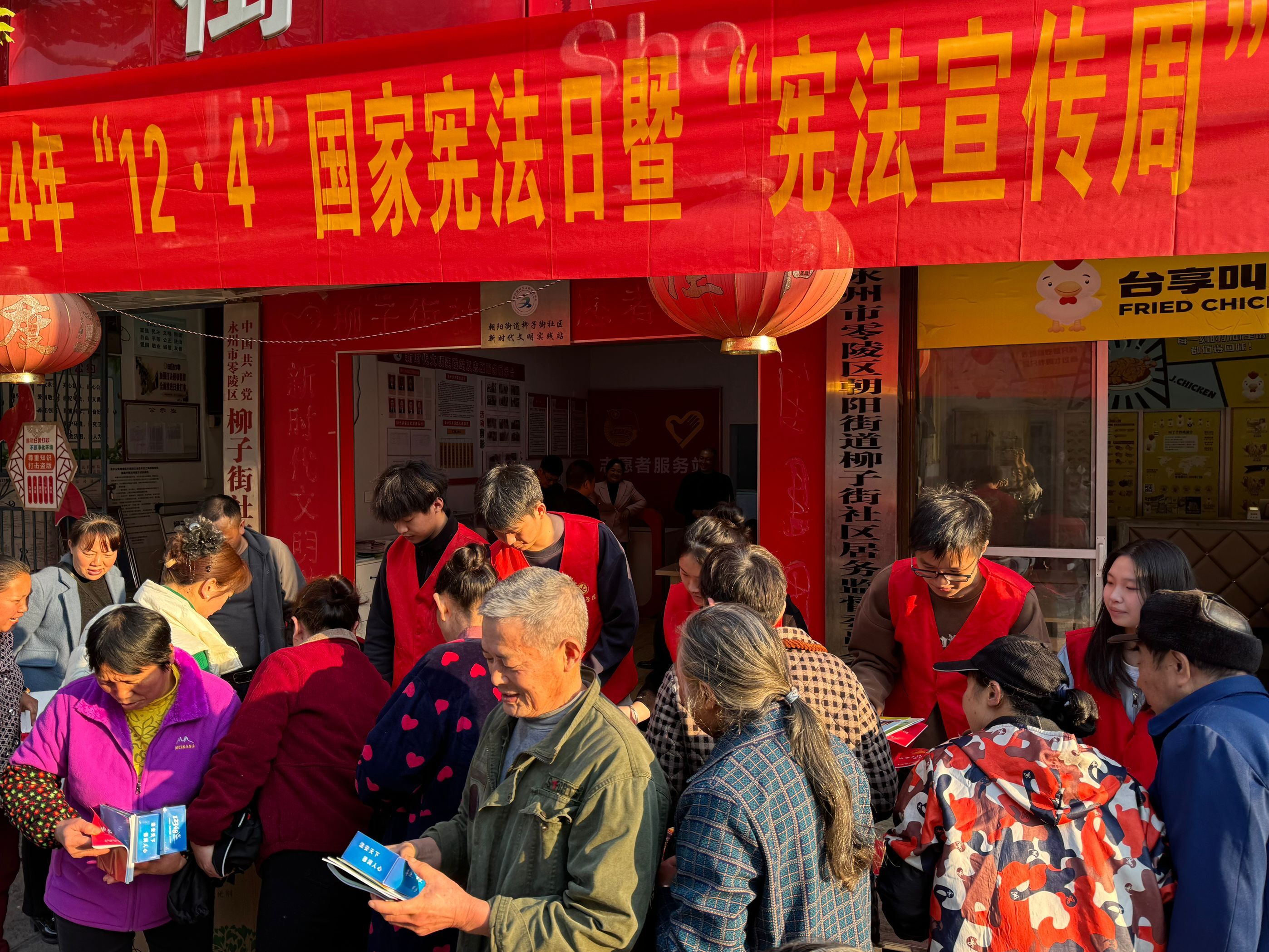 在柳子街社区,相关工作人员和大学生志愿者们通过悬挂横幅、发放宣传资料、设置咨询台等方式,向居民们普及宪法知识,解答法律疑问。