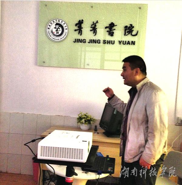 本网讯(通讯员 李莉园)11月3日上午,在菁菁书院“阳光”团体成长辅导室,浙江义乌橙果企业管理咨询有限公司的区域经理李民、湖南区负责人王景涛应邀就电子商务发展的现状与趋势、外语专业学生如何对接等内容与外国语学院学生进行交流与分享。该院党总支副书记王瑛主持交流会。