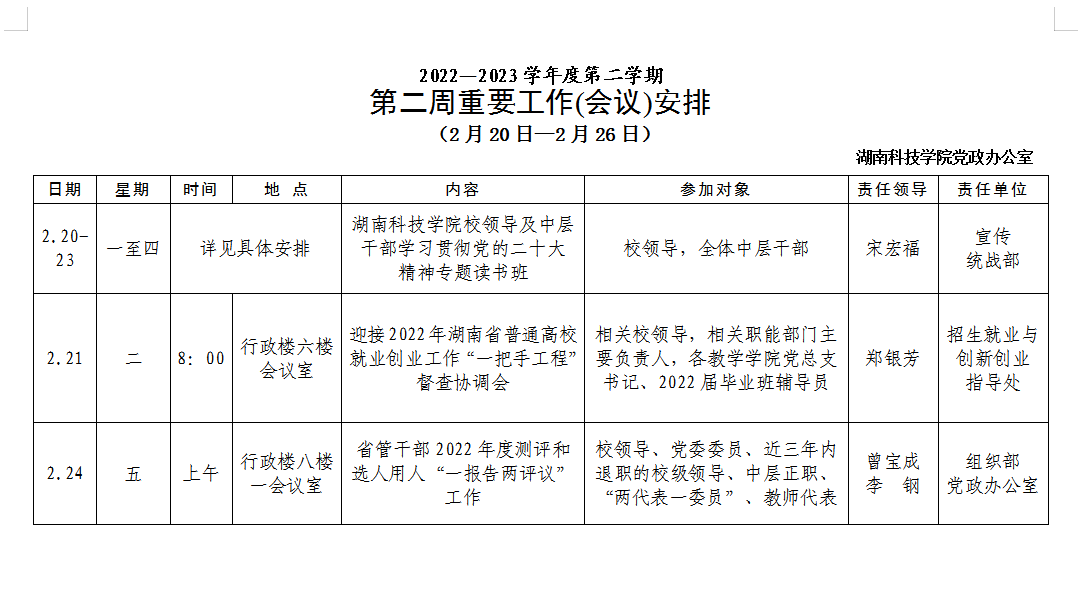 下一条:[党政办]第一周重要工作(会议)安排(2月13日一2月19日)